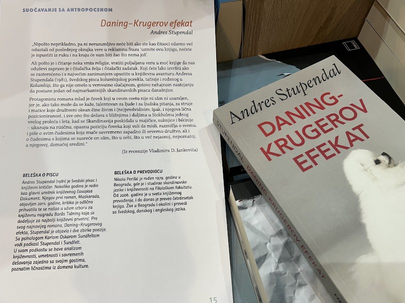 Švedski autor Andres Stupendal boravio je ove jeseni u Srbiji povodom predstavljanja svog zapaženog romana „Daning-Krugerov efekat“. Tokom gostovanja, u okviru festivala Savremena skandinavska književnost takođe u organizaciji Heliksa, održana je promocija Stupendalove knjige u galeriji Artget u Beogradu, kao i niz razgovora i intervjua sa autorom u domaćim medijima, koji su izazvali značajno interesovanje čitalaca.